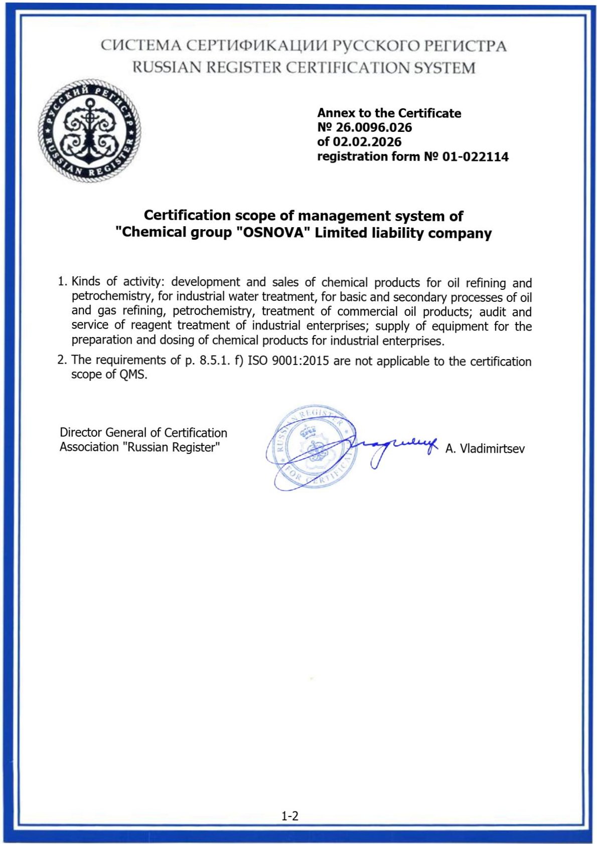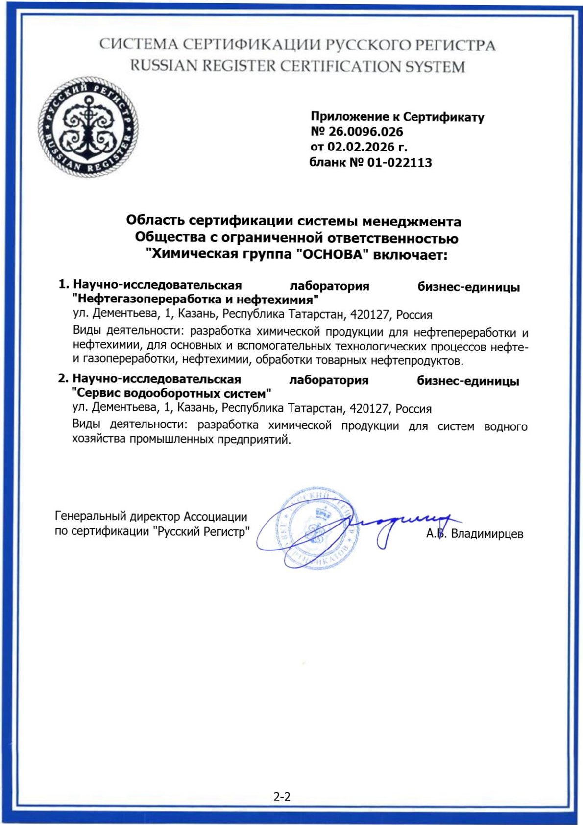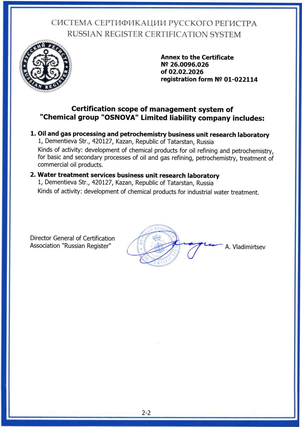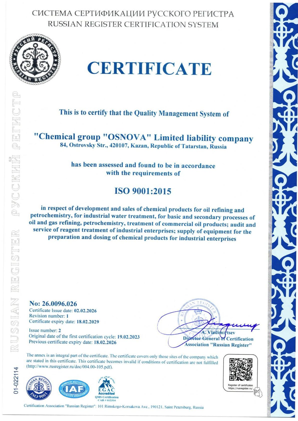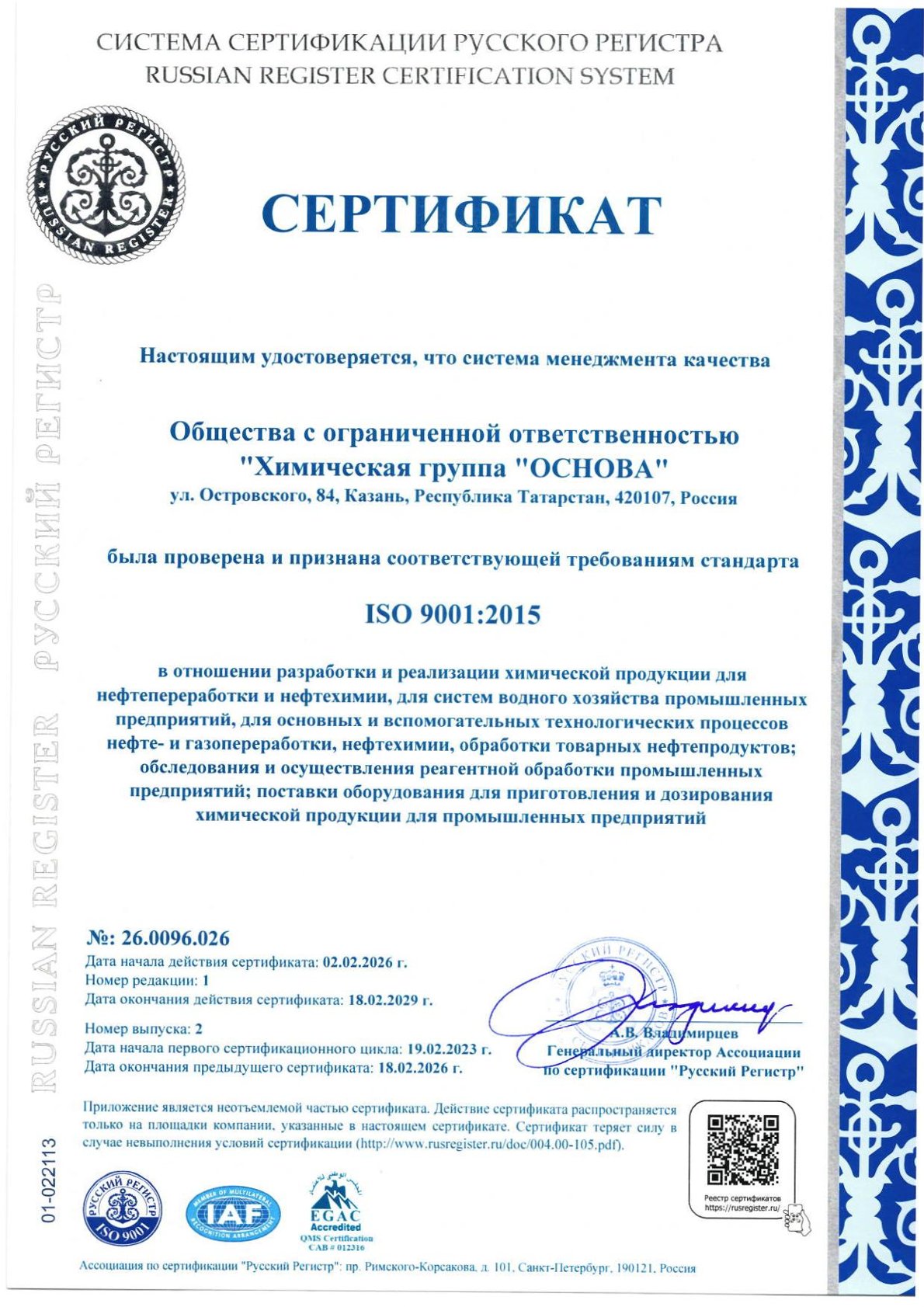 Обладает отраслевыми аккредитациями, нотификациями и признаниями: ИНТЕРГАЗСЕРТ, Военный Регистр, Оборонсертифика, IRIS, FSSC 22000 и другими.